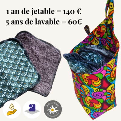 En 1 an une famille moyenne de 4 personnes consomme pour 140€ de papier toilette lavable, ici on vous propose au moins 5 ans de papier toilette pour 60€, à vous de choisir.