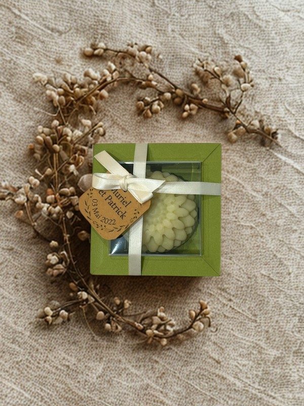 Offrez à vos invités un souvenir unique, naturel et élégant. Nos savons invités artisanaux sont fabriqués à la main dans notre atelier picard, selon la méthode de saponification à froid. Ronds, carrés, en cœur ou en fleur — tout est possible, tout est réalisable chez Bulle de Chéry. Formulés à partir d’ingrédients bio, sans huile de palme, ils incarnent le mariage parfait entre authenticité, nature et savoir-faire français. Idéals pour mariages, baptêmes, séminaires ou événements sur mesure, nos savons se déclinent à l’infini et s’adaptent à vos envies. Prix dégressif selon les quantités – Bulle de Chéry, l’artisanat du vrai, la nature au cœur du geste.